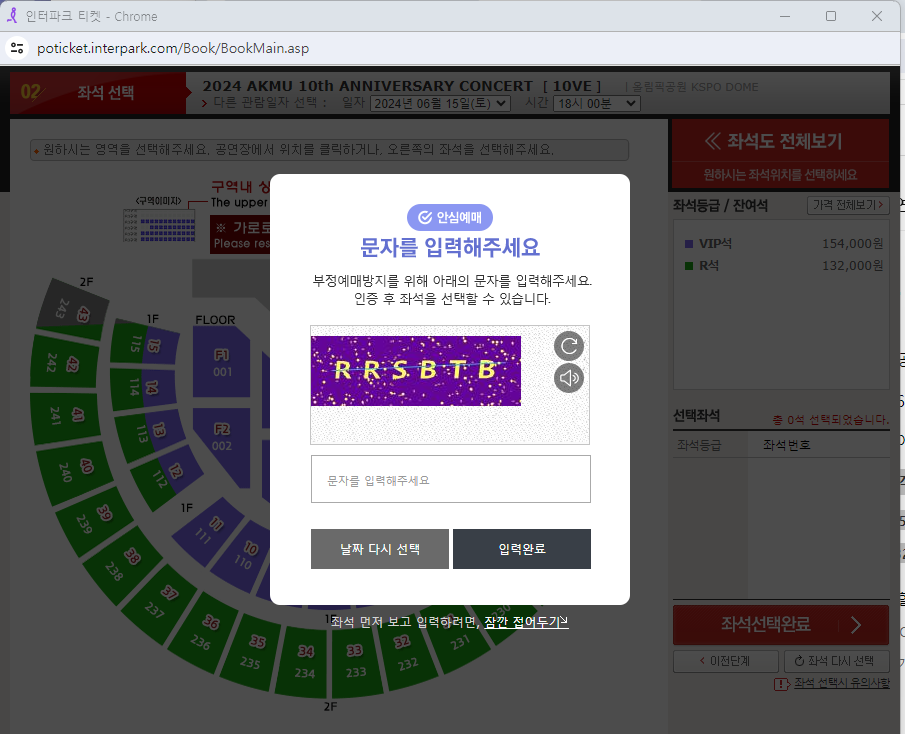 15일날짜 선택하고 예매하기 눌렀더니 이렇게 무분별한 비정상구매를 막으려고 코드를 넣으라고 한다.