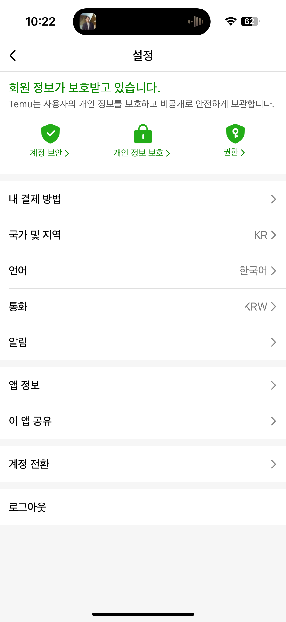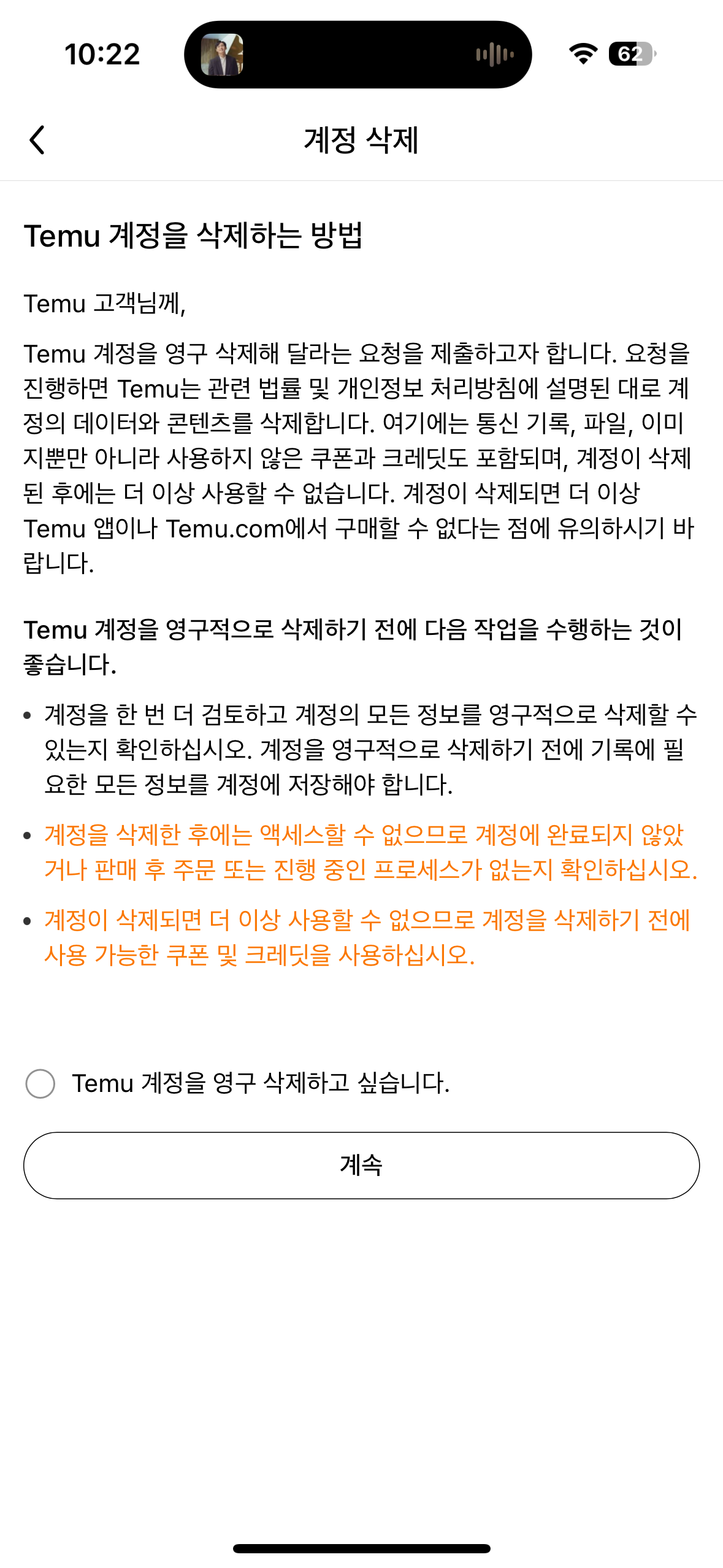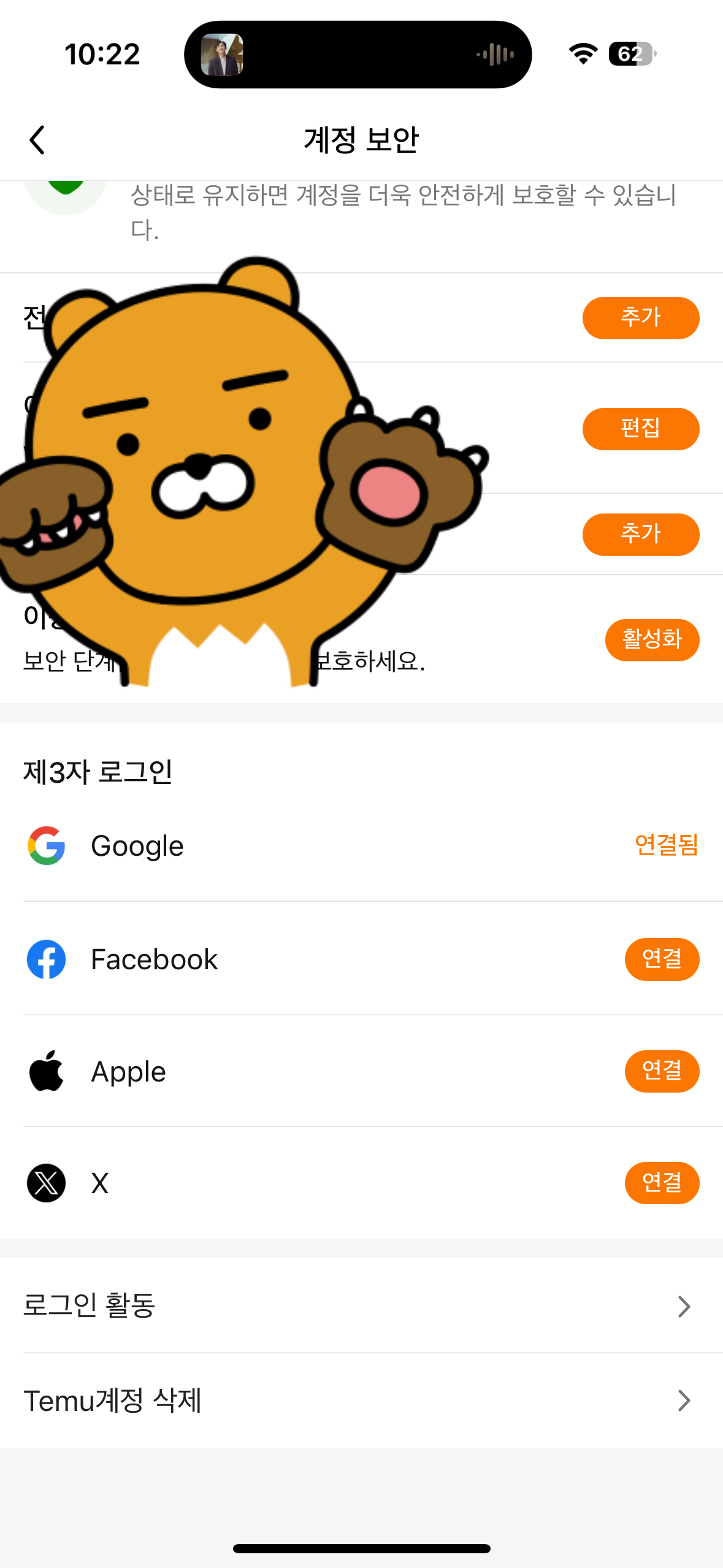 다음으로 맨 아래에 보면 Temu 계정 삭제가 보인다.