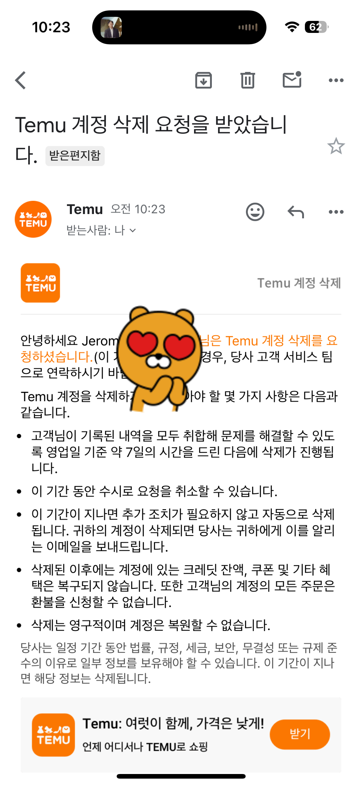 테무 광고가 많이 짜증난다. 실제로 경품을 안주면서 경품을 주는 것처럼 광고하고 또 경품을 안준다는 걸 불만으로 하는 광고까지 이제는 노출되고 있다. 테무를 해지해 보자. 어렵진 않다.