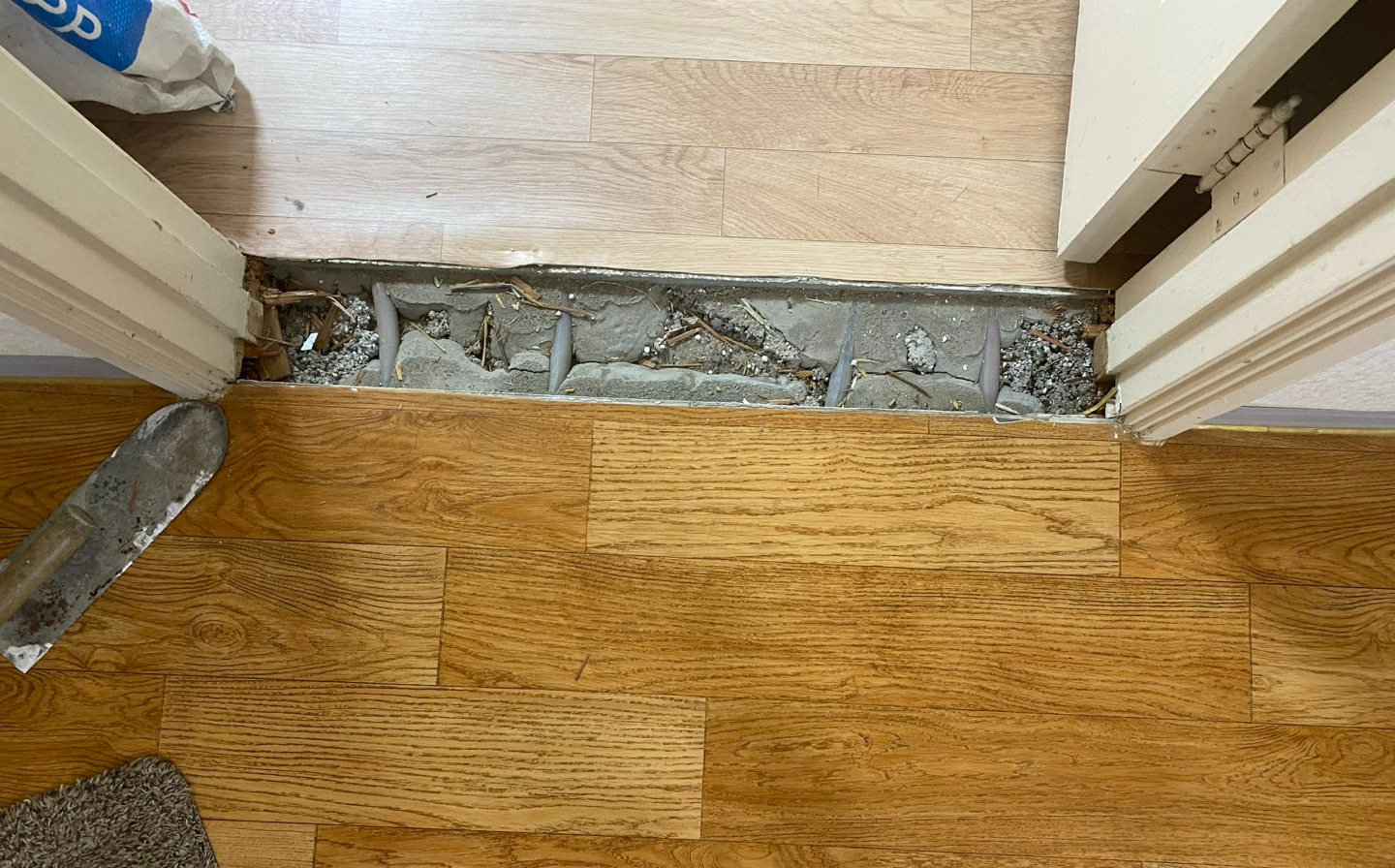 과정은 간단합니다만 의외로 힘이 많이 들어가고 도구가 필요합니다. 그리고나서 공구리 (콘크리트) 마무리를 해주십니다다. 유튜브보면서 시도해볼려고 하는 분들이 있으실텐데.. 이거 진짜 힘들고 말씀드린대로 밑에 파이프가 지나갑니다. 이거 건드릴 가능성이 매우 높아요. 뜯는데도 오래걸리고요. 다시 공구리 마무리도 쉽지 않아요.