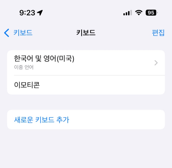 이때 기존 한국어 키보드나 영어 키보드를 지워도 상관없다. 다만 바로 인식이 안되는 경우가 있었다. 아이폰을 한번 재부팅하는것이 더 정확히 인식이 된다.
